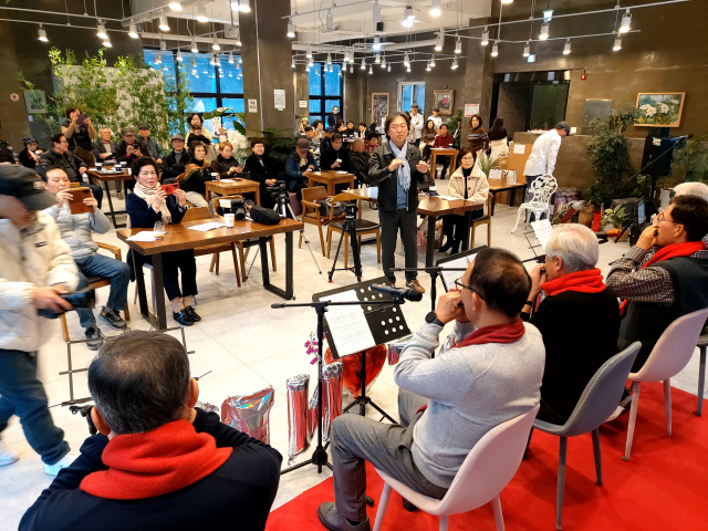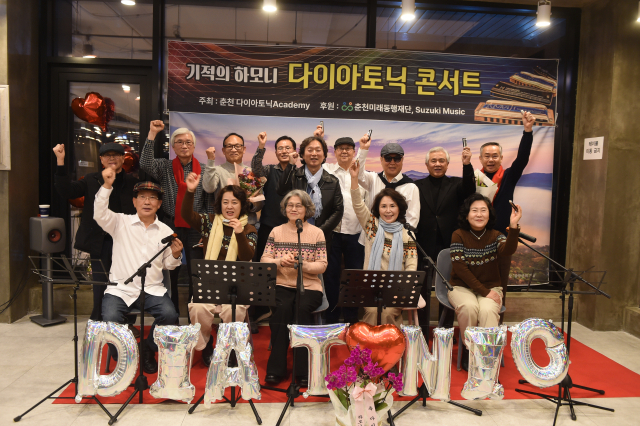 춘천미래동행재단(이사장: 신용준) 노후동행사업단 일자리 참여자10여명은 지난 29일 동아리활동으로 익힌 다이아토닉 하모니카 가을 콘서트를 칠전동 한 카페에서 가족과 친지 1백여명을 초청한가운데 열렸다.