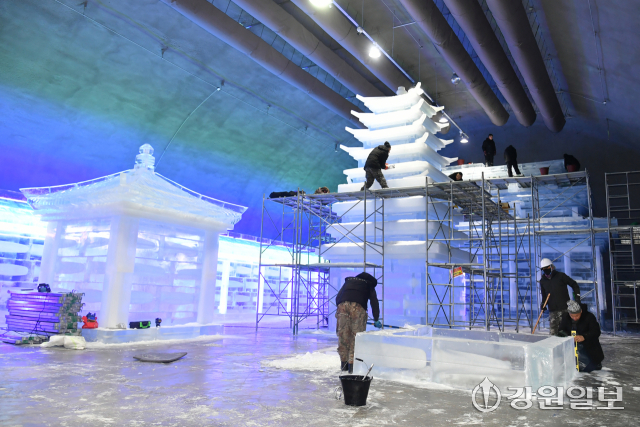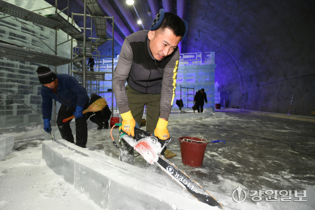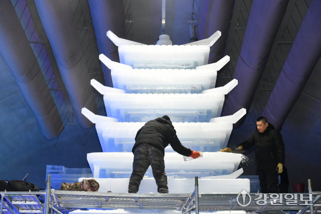세계 최대 실내 얼음조각광장은 오는 20일 선등거리 점등식에 맞춰 개장하게 된다.