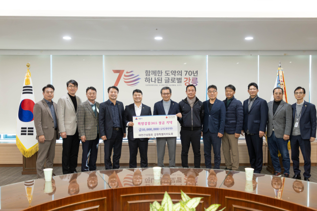 대한건설협회 강원특별자치도회(회장:최상순)는 2일 강릉시청을 방문해 김홍규 강릉시장에게 이웃돕기 성금 1,000만원을 전달했다. 이날 전달식에는 최상순 회장을 비롯한 회장단과 강릉시지역협의회(회장"박승실) 회원사들이 참석했다.