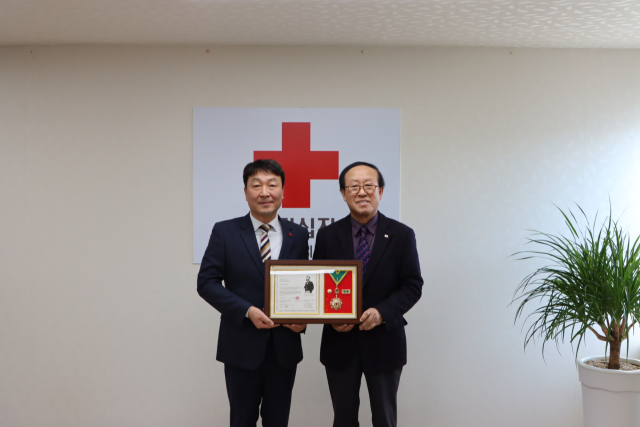 대한적십자사 강원특별자치도지사는 2일 적십자 사무실에서 강원랜드에 대한적십자사 회원유공장 중 최고 등급인 ‘최고명예대장’을 수여했다.