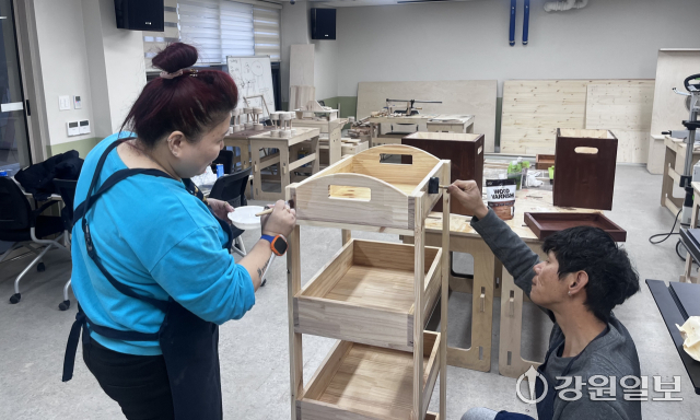 ■목공작업장·예술창고 재탄생=춘천시 약사천집수리도서관은 원목 더미와 재단기, 나무로 만든 아령이 작업대를 가득 메우고 있었다. 목공 프로그램에 참여해 서랍장을 만들던 최혜령(51)씨는 “버려졌던 집이 공유공간으로 바뀌면서 주민들을 잇는 거점이 됐다”고 말했다. 약사리고개 일대가 국토교통부 도시재생 사업지로 선정되면서 ‘집수리 도서관 조성사업’이 추진된 것. 문복례 약사명동마을관리사회적협동조합 임시대표는 “문화마을 활성화를 위해 주변 빈집을 주차장·게스트하우스 등으로 활용해 정주 인프라를 갖춰야 한다”고 말했다.