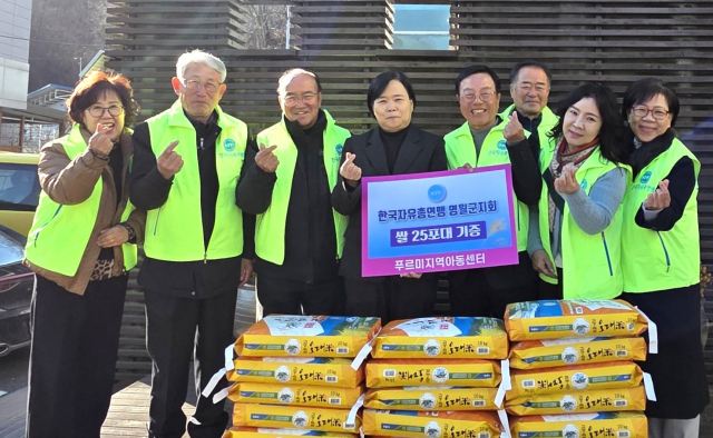 한국자유총연맹 영월군지회(지회장:최창배)는 9일 북면 푸르미 지역아동센터에서 재난구호사업으로 지역 저소득층에게 쌀(10㎏) 25포대를 전달했다.