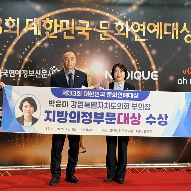 박윤미(더불어민주당·원주) 강원특별자치도의회 부의장이 제33회 대한민국 문화연예대상 '지방의정부문 대상'을 수상했다.