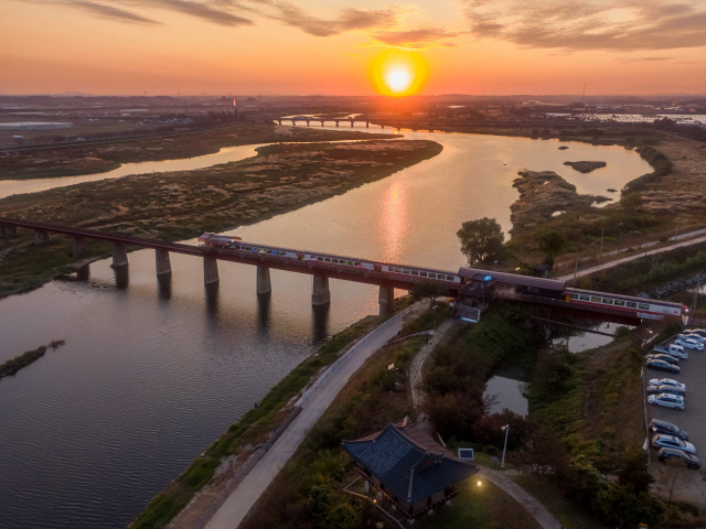 강변 폐철교 위에 자리한 ‘비비정예술열차’는 옛 새마을호 객차 4량을 매입해 리모델링했다. 1량은 레스토랑, 2·3량은 갤러리와 카페, 4량은 테라스형 공연공간으로 구성됐다. 전망대 역할을 겸하는 열차 테라스에 서면, 만경강 철교와 비비정, 그리고 앞으로 조성될 ‘물고기철길’까지 한눈에 들어온다.