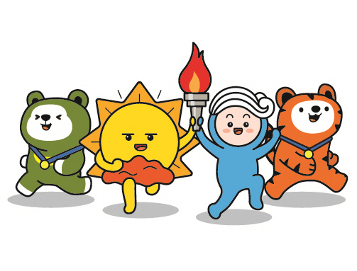 대회 마스코트는 동해시 관광 캐릭터인 해별이와 푸파, 그리고 강원특별자치도 캐릭터 강원이와 특별이를 함께 구성해 ‘하나되는 도민, 함께하는 체전’이라는 메시지를 상징적으로 담고 있다.