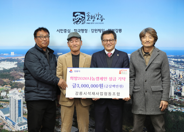 지난 12일에서는 강릉임영회(회장:김홍규)에서 성금 500만 원, 동해회(회장:우승룡)에서 성금 400만 원, 강릉시석재사업협동조합(이사장:강성택)에서 성금 300만 원을 기탁했다.