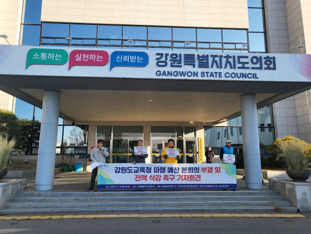 전교조 강원지부(지부장:최고봉)가 강원특별자치도교육청에 2026년도 본예산이 대거 복구된 것에 대해 강원특별자치도의회에 책임을 물으며 규탄했다.