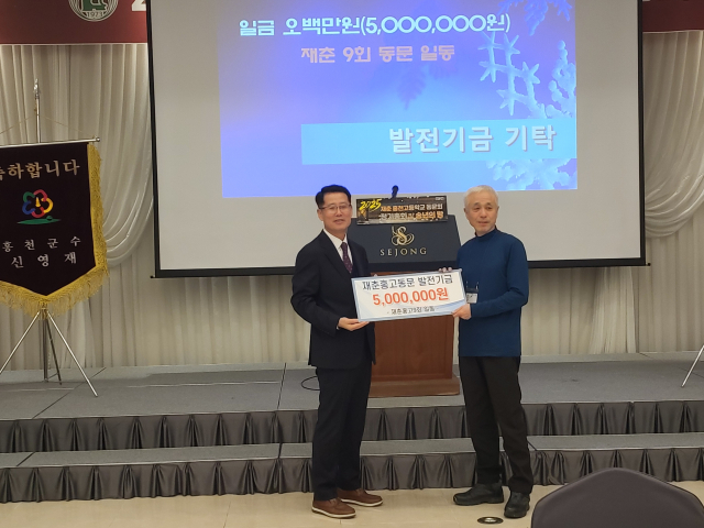 특히 이날 재춘홍고 9기는 동문 발전기금 500만원을 기탁하기도 했다.