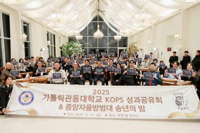 2025 가톨릭관동대 KOPS 성과 공유회 & 중앙자율방범대 송년의 밤이 지난 12일 푸른달하우스에서 김홍규강릉시장, 최익순 강릉시의장 등이 참석한 가운데 열렸다.