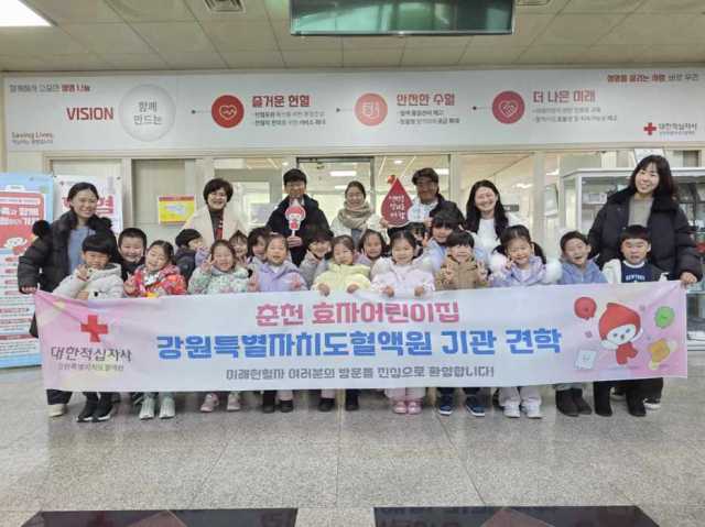 춘천 효자어린이집(원장:엄현옥)은 15일 강원혈액원을 방문해 교직원과 학부모가 헌혈에 참여했다. 아이들은 혈액원을 둘러보며 혈액원의 역할과 생명을 살리는 혈액의 소중함을 직접 살펴보는 시간을 가지면서 생명 존중과 나눔의 가치를 배웠다.