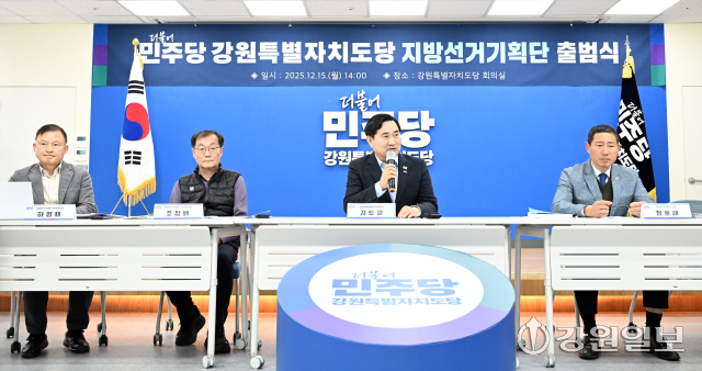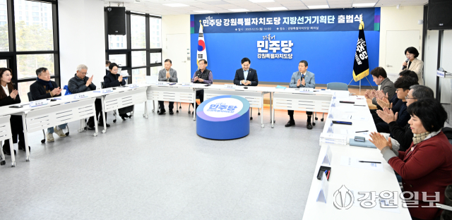 더불어민주당 강원자치도당 지방선거기획단 출범식이 15일 도당 회의실에서 김도균 도당위원장, 정훈태 지방선거기획단 단장(도당 사무처장)을 비롯한 위원들이 참석한 가운데 열렸다. 이날 출범식에서 지방선거기획단 구성 및 운영 방안 등이 논의됐다.