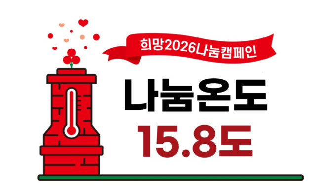 강원사회복지공동모금회가 진행하는 ‘희망 2026 나눔캠페인’ 사랑의 온도탑 수은주가 16일 15.8도를 기록하고 있다.