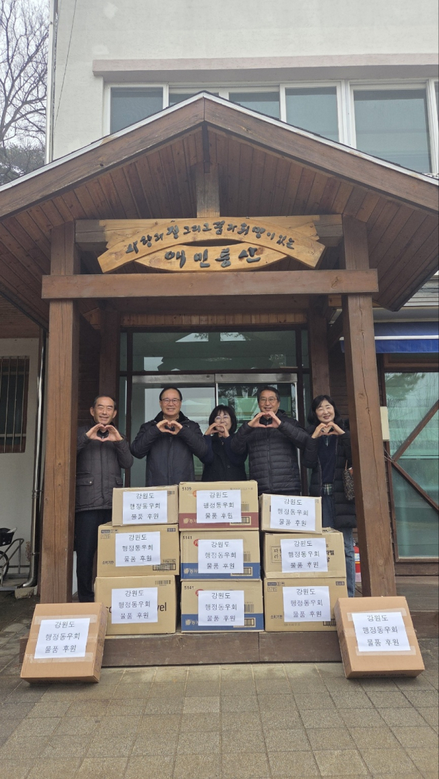 강원특별자치도 행정동우회(회장:오춘석)는 16일 연말을 맞아 회원들의 자발적인 이웃사랑 실천 활동의 일환으로 모금한 성금으로 65만원 상당의 생활용품을 구입해 춘천시 우두동 애민보육원에 전달했다.