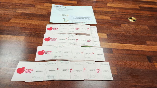 1년전 해당 초교에 장학금을 전달(본보 2024년 12월18일자 21면 보도)했는데 전교생 모두가 감사의 내용을 가득 담아 손으로 꾹꾹 눌러쓴 연하장을 보내 훈훈한 감동을 주고 있다.