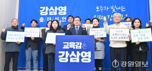 강삼영 전국교육자치혁신연대 상임대표가 16일 도교육청에서 기자회견을 열고 교육감 선거 출마를 선언하고 있다. 신세희기자강삼영 전국교육자치혁신연대 상임대표와 지지자들이 16일 도교육청에서 열린 교육감 출마 선언 기자회견 후 기념촬영하고 있다. 임도혁기자강삼영 전국교육자치혁신연대 상임대표와 지지자들이 16일 도교육청에서 열린 교육감 출마 선언 기자회견 후 기념촬영하고 있다. 신세희기자강삼영 전국교육자치혁신연대 상임대표가 16일 도교육청에서 기자회견을 열고 교육감 선거 출마를 선언하고 있다. 신세희기자