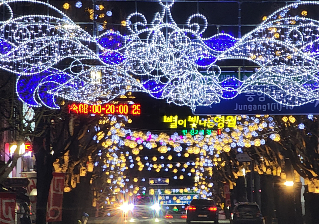 【영월】겨울 밤 영월 중앙로가 레드·골드빛으로 물들며 화려한 빛의 거리로 변신했다.