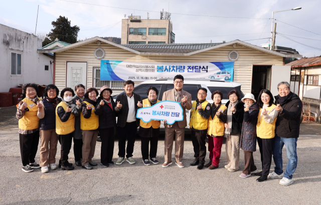 【삼척】삼척시는 지난 16일 대한적십자사봉사회 삼척시협의회 사무실 앞에서 봉사자 수송차량 전달식을 진행했다.