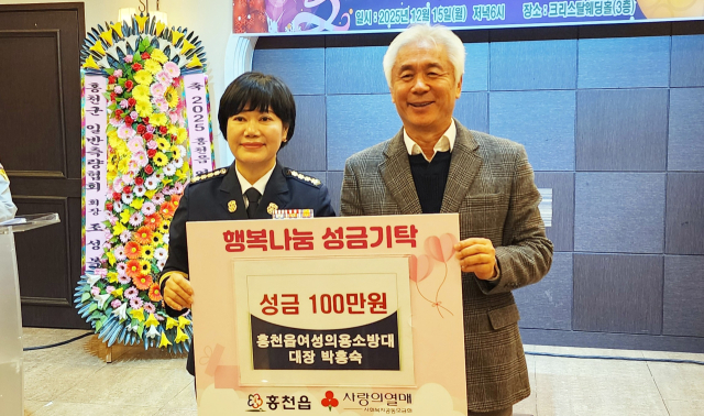 홍천읍여성의용소방대(대장:박홍숙)는 지난 15일 크리스탈컨벤션에서 신영재 군수, 박영록 군의장, 이강우 홍천소방서장 등이 참석한 가운데 연말 총회를 개최했다. 이날 홍천읍행정복지센터에 어려운 이웃돕기 성금으로 100만원도 기탁했다.