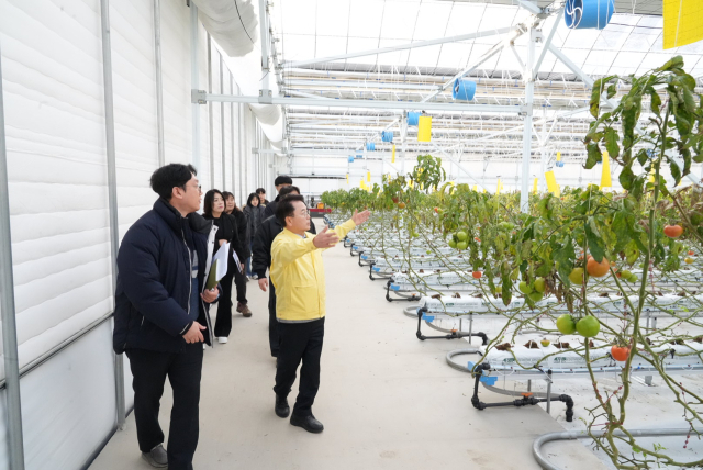 육동한 춘천시장은 17일 북산면 토마토 시설하우스 농가와 신북읍 축사를 찾아 동절기 재배 및 사육 환경을 살폈다.