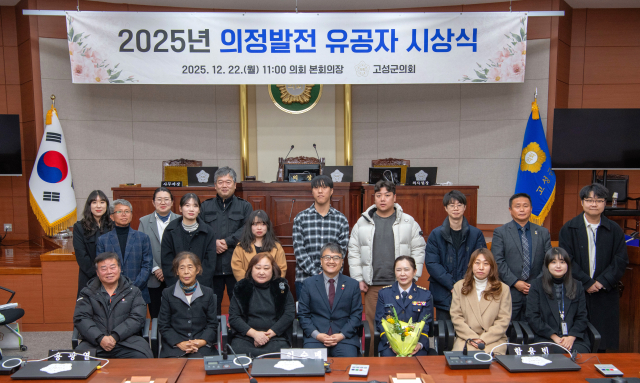 고성군의회(의장:용광열)는 22일 의회 본회의장에서 ‘2025년 의정발전 유공자 시상식’을 열고 지역사회 발전과 지방자치 활성화에 기여한 유공자들을 격려했다. 이번 시상식에서는 의정활동에 적극 협조하며 군정과 지역 발전에 이바지한 주민과 공무원, 군인 등 24명이 수상의 영예를 안았다.
