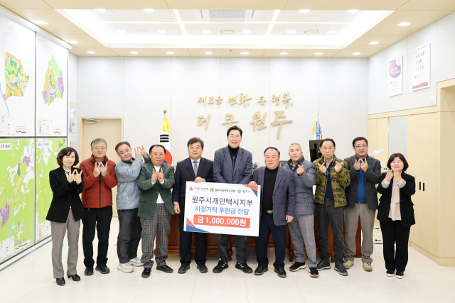 강원도개인택시운송사업조합 원주시지부(지부장:서철원)는 23일 원주시청에서 지역 내 저소득층을 위한 후원금 100만원을 전달했다. 후원금은 사회복지공동모금회를 통해 저소득 취약계층 복지사업에 쓰인다.