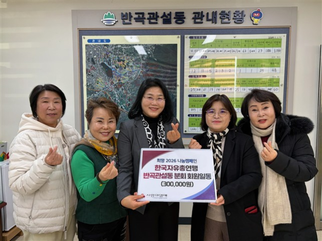 한국자유총연맹 반곡관설동 분회(회장:윤창숙)는 지난 22일 반곡관설동행정복지센터에서 희망2026 나눔캠페인 성금 30만원을 기탁했다.