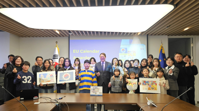 23일 서울 중구에서 열린 ‘2025년 주한 EU 학생 달력 그림 공모전 시상식’에는 지역 내 학생 14명이 참석해 대상과 최우수상, 우수상 등을 수상했다.