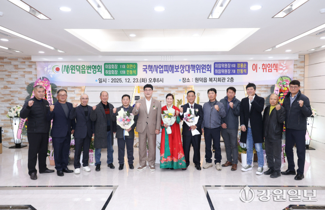 삼척시 원덕읍 번영회장 및 국책사업피해보상대책위원장 이·취임식이 지난 23일 원덕읍 복지회관에서 열려 제11대 이만수 원덕읍 번영회장과 제6대 정용순 국책사업피해보상대책위원장이 이임하고 민동석 회장이 양단체 회장으로 취임했다.