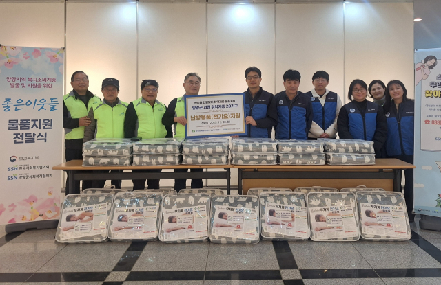 양양양수발전소(소장:임제순)는 30일 양양군사회복지협의회(회장:최종한)를 찾아 직원들이 십시일반 모은 성금으로 구입한 전기요 25개를 지역의 소외계층을 위해 써달라고 전달했다.