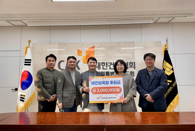 대한건설협회 강원특별자치도회(회장:최상순)는 30일 도회 회의실에서 애민보육원(원장:김혜순)에 아동복지 지원을 위한 후원금 300만원을 전달했다. 이날 전달식에는 최상순 대한건설협회 강원특별자치도회장과 전명길 부회장 등이 참석했다.