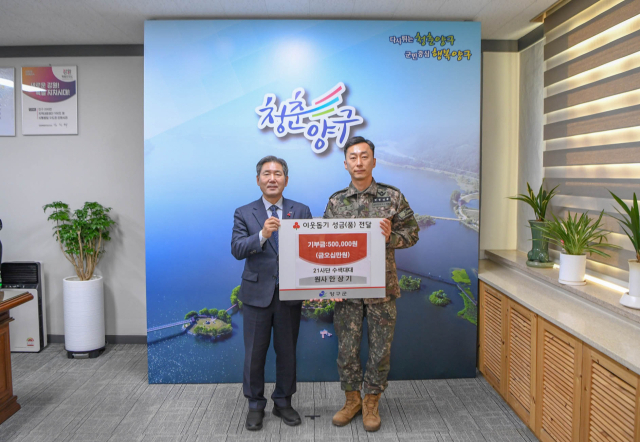 간부의 솔선수범도 이어졌다. 수색대대 안상기 원사는 지난해 10월 ‘육군 충용대상’ 표창과 함께 받은 상금 전액을 양구군청 이웃돕기 성금으로 기탁했다.