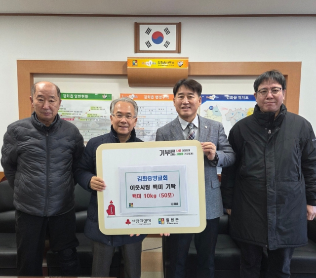 김화읍에서도 나눔 행렬이 이어졌다. 김화중앙교회(목사:김대덕)는 지난해 12월 31일 김화읍사무소를 방문해 어려운 이웃을 위한 백미 50포(200만원 상당)를 기탁했다. 이번 백미는 교회 성도들의 자발적인 참여로 마련됐으며 김화읍 취약계층에 전달될 예정이다. 김대덕 목사는 "작은 정성이지만 지역의 어려운 이웃들에게 따뜻한 마음이 전해지길 바란다"며 "앞으로도 지역사회와 함께하는 나눔을 꾸준히 실천하겠다"고 밝혔다.