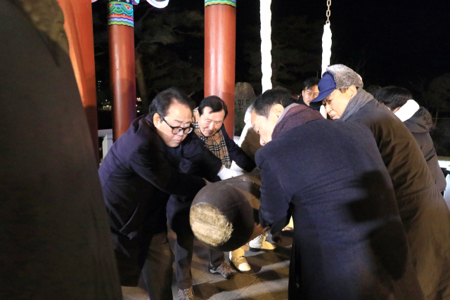 인제군 제야의 종 타종행사가 지난해 12월 31일 밤 합강정 군민의 종각에서 최상기군수, 이춘만군의장 등 관계자 및 군민들이 참석한 가운데 열렸다.