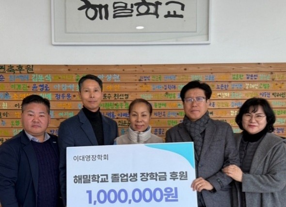 이대영 장학회·봉사회는 지난해 31일 홍천 남면의 해밀학교의 제11회 졸업식에서 장학금 100만원을 전달했다.
