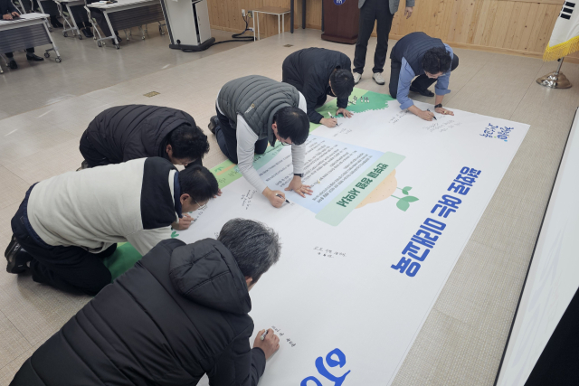 고성교육지원청(교육장:홍성봉)은 5일 청사 대회의실에서 ‘전 직원이 함께하는 청렴 씨앗 심기 서약식’을 개최했다. 이번 행사는 하향식 전달에서 벗어나 수평적이고 자유로운 소통을 위해 대형 현수막을 활용한 롤링페이퍼 형식으로 진행됐다. 직원들은 현수막에 직무 수행, 부당 관행 타파 등 실천할 수 있는 행동 수칙과 새해 소망을 적으며 청렴 실천을 다짐했다.