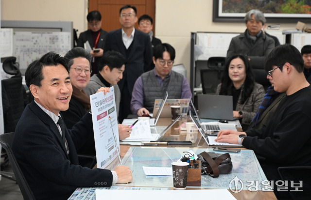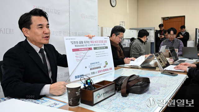 김진태 강원특별자치도지사가 5일 도청 브리핑룸에서 신년 기자 간담회를 하고 있다.