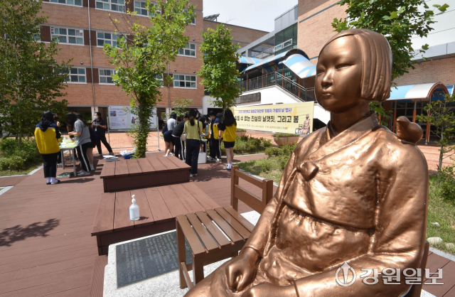 춘천여고는 지난 2019년 도내 학교 중 처음으로 평화의 소녀상을 교정에 세웠다.