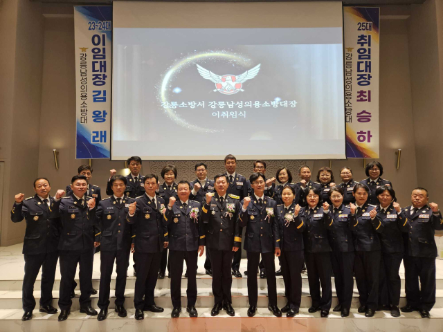 강릉소방서(서장:김진문)는 지난 5일 강릉 세인트컨벤션에서 강릉남성의용소방대장 이·취임식 행사를 개최했다. 이날 최승하 대장이 취임하고, 김왕래 대장이 이임했다.