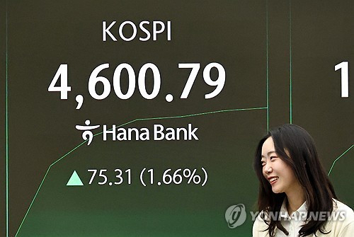 코스피가 사상 처음으로 장중 한때 4,600선을 돌파했다. 환율도 5일 연속으로 상승세를 이어갔다.