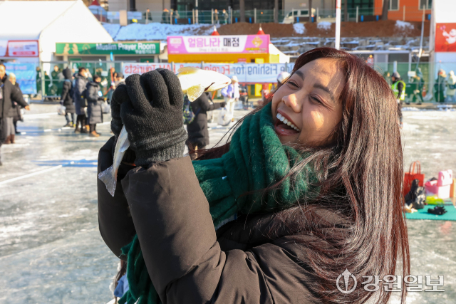 ■ ‘계곡의 여왕’ 산천어와의 만남=화천산천어축제의 대표 콘텐츠는 산천어 체험이다. 축제장에서는 얼음낚시와 맨손잡기를 통해 산천어와 만날 수 있다. 산천어 얼음낚시는 온라인 예약을 통해 체험할 수 있고, 예약을 하지 않았더라도 현장 낚시터를 이용할 수 있다. 낮에 산천어와의 조우에 실패했다면 밤낚시를 노리면 된다. ‘이한치한’ 산천어 맨손잡기도 화천에서만 만날 수 있는 이벤트다. 매년 10만 명 이상 방문하는 외국인들을 위해 전용 낚시터와 쉼터도 마련된다.