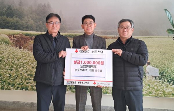 성호산업㈜(대표:최준섭)은 지난 7일 봉평면사무소와 진부면사무소를 방문해 어려운 이웃을 위해 사용해달라며 각각 100만원씩 ‘희망2026 나눔캠페인’ 성금을 기탁했다.