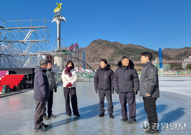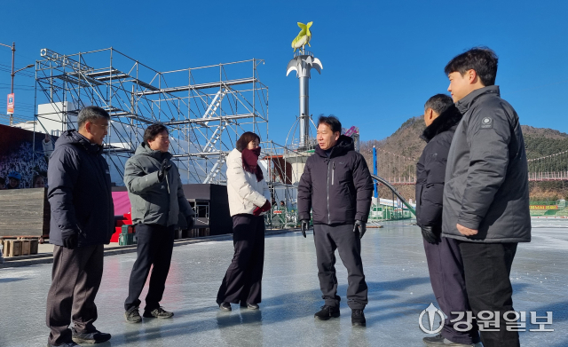 류희상 화천군의장, 조웅희 부의장을 비롯한 군의원들이 8일 산천어축제장을 순회하며 안전 점검을 진행했다.