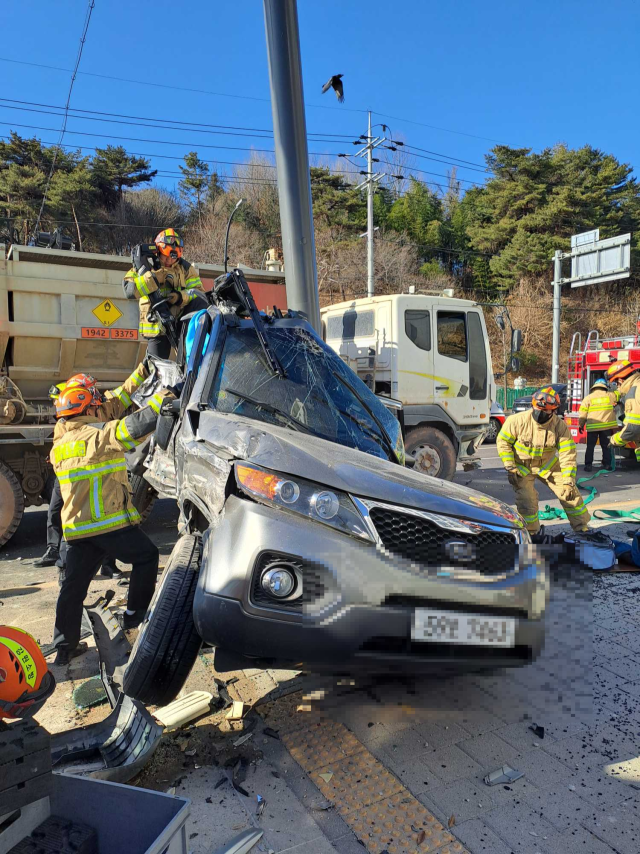8일 낮 12시51분께 동해시 효가동의 한 도로에서 쏘렌토 승용차가 뒤따라오던 16톤 화물트럭과 부딪힌 뒤 신호등을 들이받았다. 이 사고로 쏘렌토 운전자 60대 A씨가 의식불명 상태로 인근 병원으로 옮겨졌으나 숨졌다. 쏘렌토 동승자 50대 B씨는 병원에서 치료를 받고 있다. 이날 오전 11시36분께 홍천군 화촌면에서는 C(여·64)씨가 몰던 모닝 차량이 전복되는 단독 교통사고가 났다. 경찰은 정확한 사고 원인을 조사 중이다.