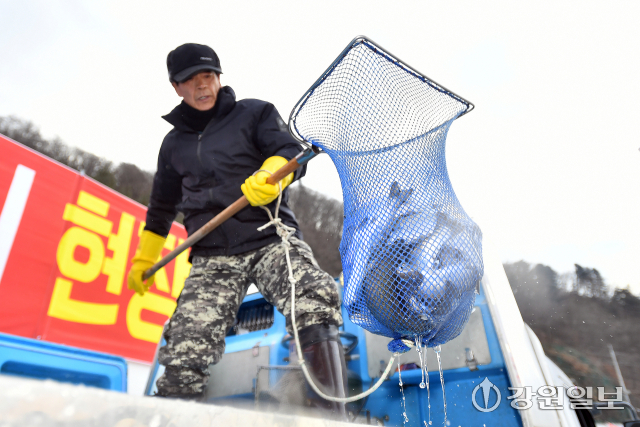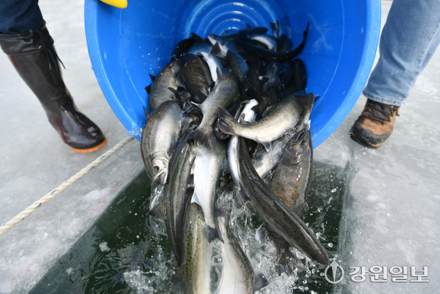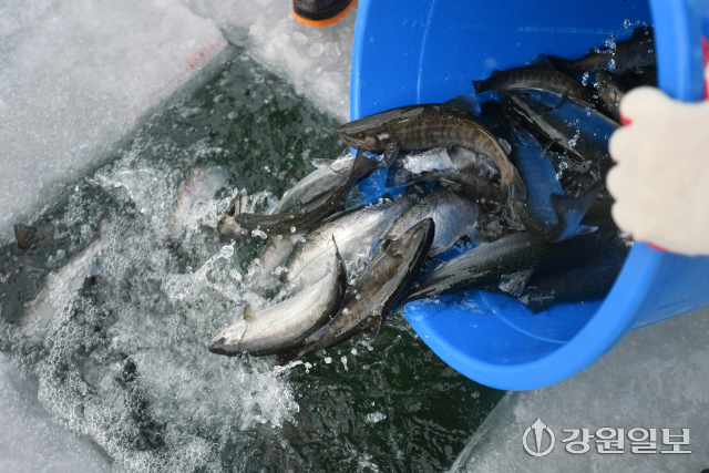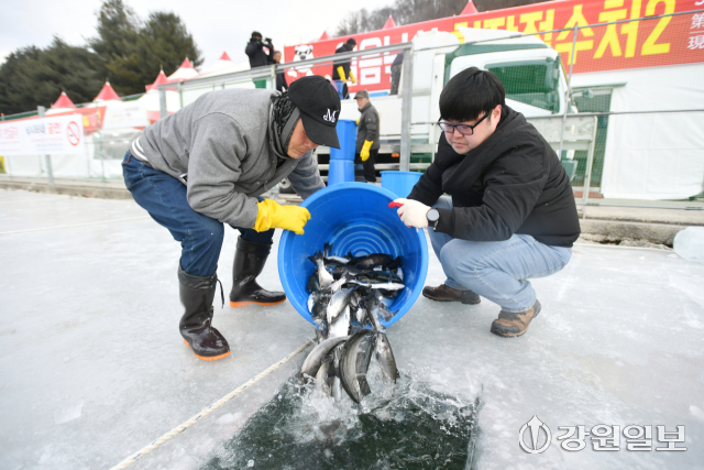 ■한파로 얼음판 결빙이 순조롭게 이뤄지고 있다= “화천은 얼음판을 만드는 기술에 있어 국내 최고다. 화천천 상류의 여수로를 통해 유속과 유량을 조절하고 매일 얼음의 두께를 모니터링한다. 9일 현재 30㎝ 두께의 얼음판이 형성됐다. 한파로 얼음판의 강도 역시 최상을 유지하고 있다. 축제가 시작되면 매일 수중 점검반을 투입, 얼음을 점검한다. 안전이 최우선이다. 매일 각급 기관에서 안전점검을 하고 있다.”
