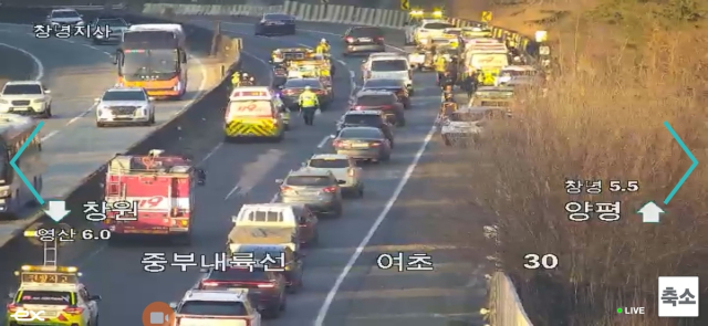 경찰과 소방에 따르면 이날 오후 4시 33분께 경남 창녕군 창녕읍 중부내륙고속도로 양평 방면 도로에서 승용차 12대가 잇따라 추돌했다.