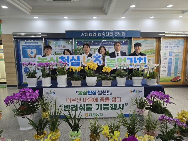 김병용 농협중앙회 강원본부장과 이명호 농협은행 본부장은 12일 춘천남부노인복지관을 찾아 독거노인 등 지역 내 취약계층 어르신들을 위해 취임 축하 화분 300여 개를 기부했다.