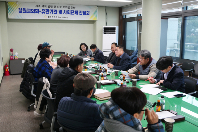 철원군의회(의장:한종문)는 12일 군의회 2층 소회의실에서 철원군민박펜션협회 관계자들과 간담회를 갖고 지역관광 활성화와 숙박업계 애로사항을 청취했다.