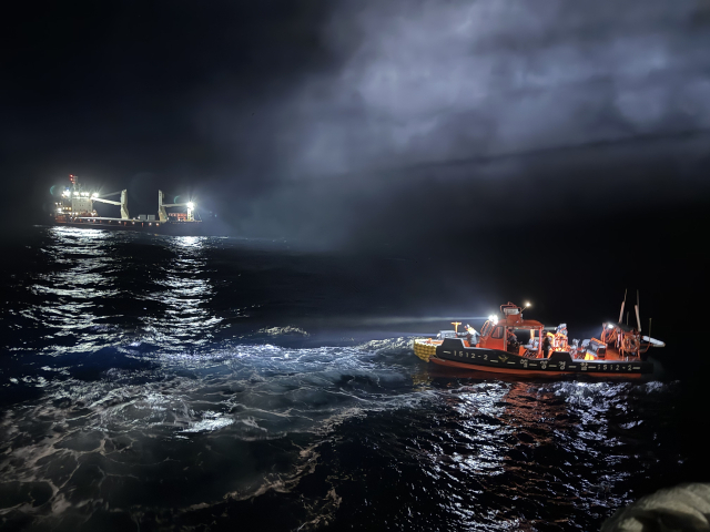 이 과정에서 풍랑경보 등으로 기상이 불량한 상태에서 6,000톤급(적재물 포함 1만톤) 대형상선을 14시간 동안 안전관리 했지만 13일 오전 11시께 울릉도 서남쪽 해상에서 연결된 예인줄이 끊겼다.