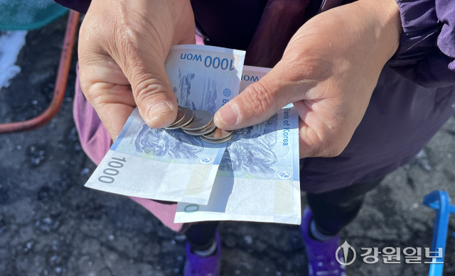 잠시 뒤 이 고물상을 찾은 정모씨 역시 폐지를 판매한 뒤 손에 든 몇장에 지폐를 보고 한숨을 내쉬었다. 눈길에 몇번을 넘어지면서 리어카를 끌고 고물상을 찾았다는 정씨는 “지난해 폐지 1㎏당 100원은 쳐줬는데 지금은 60원도 감지덕지”라며 “추위와 눈, 빙판길 때문에 이전보다 가져 올 수 있는 폐지와 빈병이 많이 줄었다”고 했다.