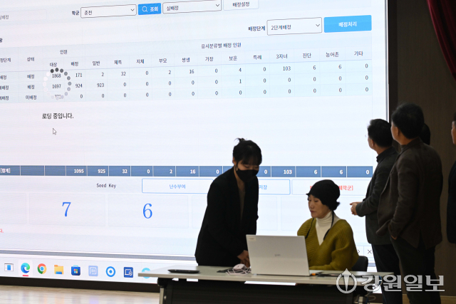 2026학년도 강원자치도교육감 입학전형 고등학교 신입생 추첨·배정이 13일 도교육청 강당에서 입학추첨관리위원들과 평준화지역 고등학교장, 학부모, 교사 등이 참석한 가운데 실시됐다. 박승선기자2026학년도 강원자치도교육감 입학전형 고등학교 신입생 추첨·배정이 13일 도교육청 강당에서 입학추첨관리위원들과 평준화지역 고등학교장, 학부모, 교사 등이 참석한 가운데 실시됐다. 박승선기자2026학년도 강원자치도교육감 입학전형 고등학교 신입생 추첨·배정이 13일 도교육청 강당에서 입학추첨관리위원들과 평준화지역 고등학교장, 학부모, 교사 등이 참석한 가운데 실시됐다. 박승선기자